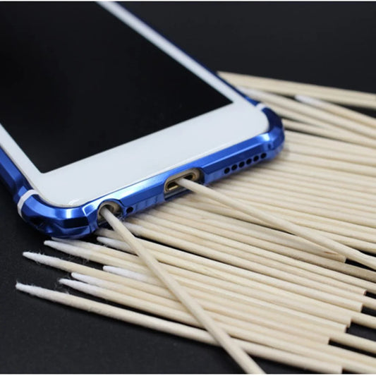 100 Pcs Cotton Swab 6.7 Inch Wood Handle for Earphone Phones Charge Ports