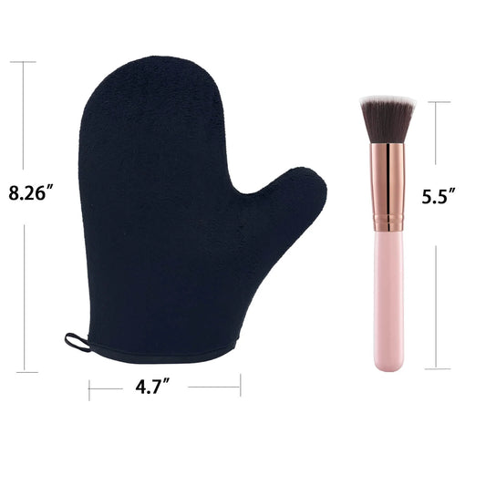 2 Pack Self Tanning Mitt Applicator Kit Set, Self Tanning Glove and Self Tanner Flat Top Brush, Tan Applicator for Sunless Fake Bake Self Tan